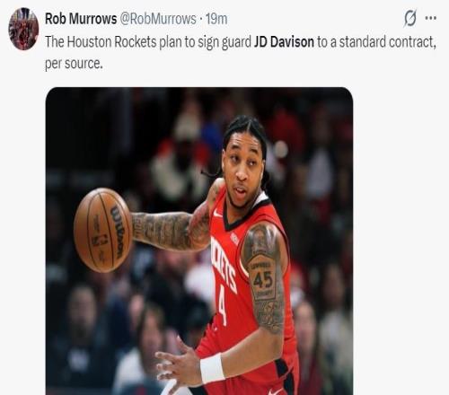 征途国际:曝火箭计划与后卫JD戴维森签下一份标准合同