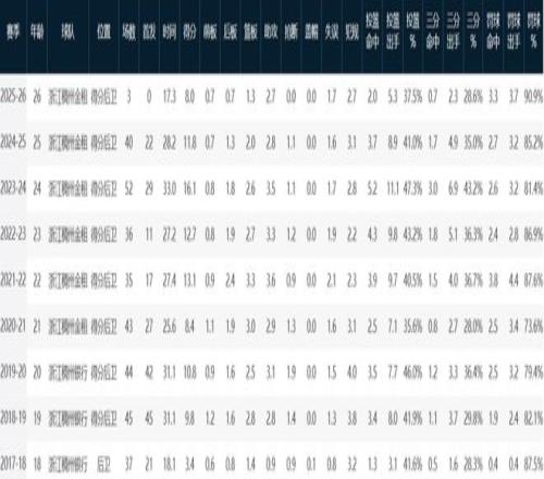 浙江队数据如下: