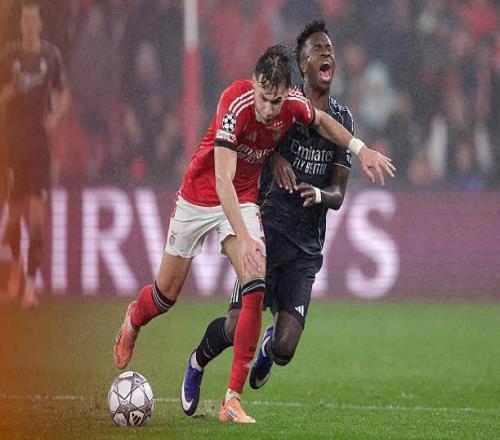 最重要的一点,穆里尼奥的球队明显更硬气。你可以说本菲卡过去2周一塌糊涂,杯赛、联赛和欧冠三线输球,前景黯淡。但这一次,他的小伙子确实给主场的几万名球迷张脸:寸土不让,每球必争。“被解放的”维尼修斯再度沉迷于一对一,完全不顾身后卡雷拉斯无力招架的防区。姆巴佩率先头球破门一度让人相信皇马又能凭球星效应胜出,但场面却不容乐观。挪威人谢尔德鲁普很快奉还了一记同样精彩的头球冲顶,将皇马防线的脆弱完全暴露出来。
