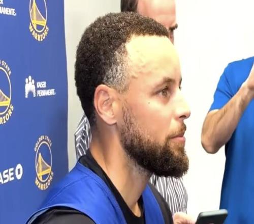 北京时间4月14日,在NBA附加赛勇士对阵快船赛前,库里接受了媒体的采访。