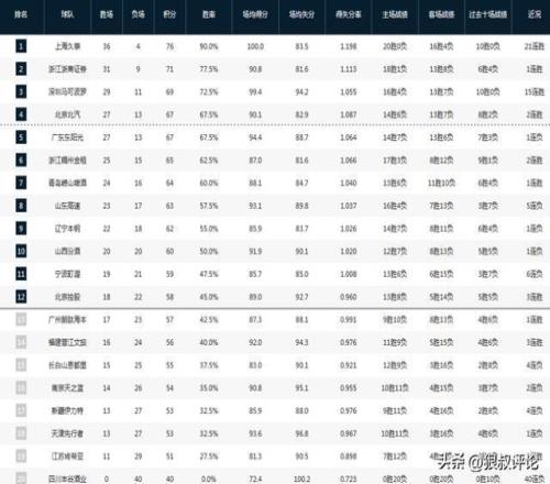 CBA最新排名:广东离奇输球神助攻北京辽宁不敌浙江跌出前8