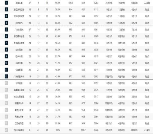 福建男篮排在第十四名、吉林男篮第十五名、新疆男篮第十六名、南京男篮第十七名、天津男篮第十八名、江苏男篮第十九名、四川男篮41连败还是第二十名!