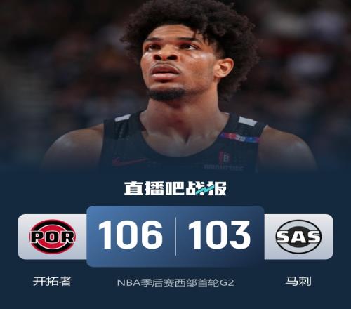 开拓者逆转马刺扳平大比分亨德森31分文班脑震荡伤退