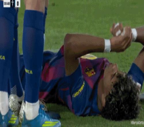 第41分钟,亚马尔罚进点球后受伤,无法坚持被替换下场