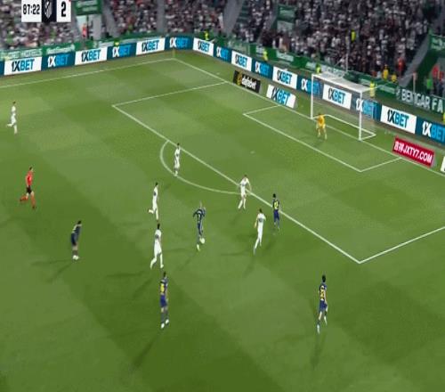 第75分钟,阿芬格鲁贝尔送助攻,安德烈-席尔瓦推射破门!埃尔切3-2马竞