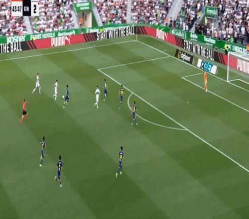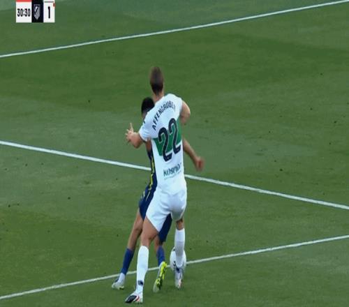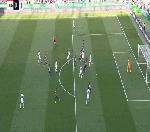 第36分钟,冈萨雷斯底线极限救球,随后挑过门将头球破门!马竞2-2