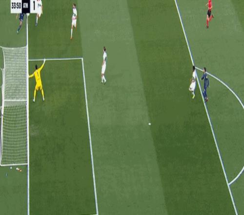 第88分钟,格列兹曼左脚兜射,皮球被门将扑出