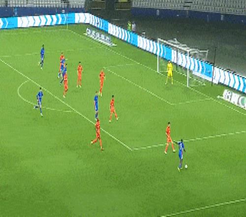 第42分钟,马纳法右路传到禁区,拉唐飞身头球被牟鹏飞神勇扑出,随后拉唐两度补射,再被牟鹏飞两度扑出。
