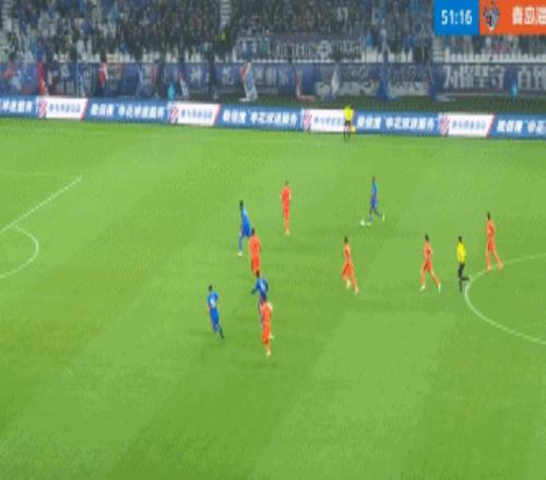 第46分钟,拉唐打门被牟鹏飞扑出,特谢拉补射破门,申花下半场带球入场,1-0领先海牛。