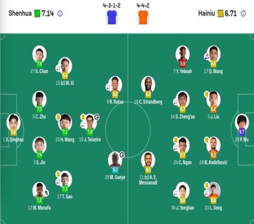 前卫:17-高天意(65'43-杨皓宇)、9-拉唐(F)(65'18-刘诚宇)、10-特谢拉(F)(77'30-谢鹏飞)