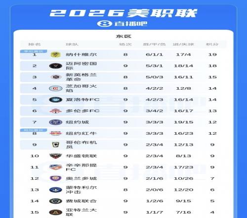 美职联最新积分榜:迈阿密先赛距东区第一差1分,9轮进18球丢14球