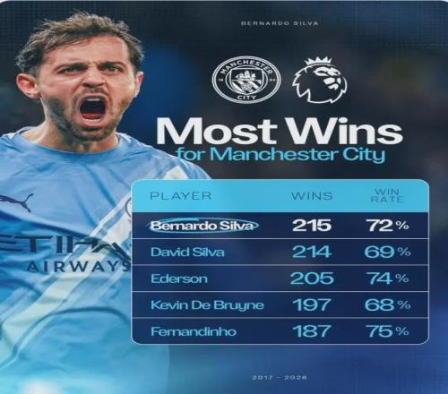 在这场略显沉闷的胜利中,B席首发出战,以215场英超胜利超越大卫·席尔瓦,独享曼城队史胜场王宝座。在德布劳内老化、罗德里长期伤缺的至暗时刻,是B席用不知疲倦的奔跑撑起了中场硬度。