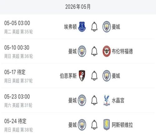 随着本赛季英超联赛即将进入最后阶段,曼城队与阿森纳队的冠军之争也来到了最后的关键时刻。首先要说的是,由于曼城队还有一场与水晶宫的补赛将在5月23日进行,所以曼城队目前还剩下五轮联赛要打。