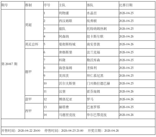 传足胜负彩第26067期看点:热刺志在保级阿森纳施压曼城