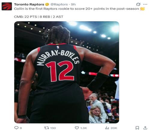 NBA记者凯文-奥康纳写道:博伊尔斯的表现已经非常出色了,猛龙真的捡到宝了。