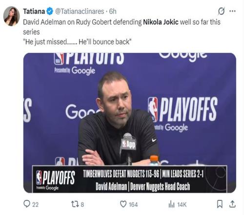 掘金主帅大卫-阿德尔曼谈到这轮系列赛约基奇被戈贝尔冰封,阿德尔曼说道:约基奇只是低迷而已,他会重新振作起来的。我也不恐慌,征途国际 曾经0-2落后、甚至1-3落后。