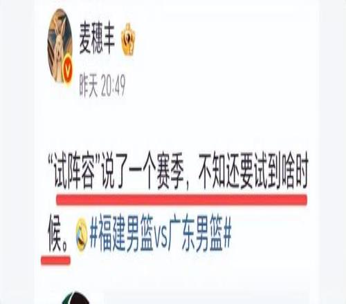 那么问题来了,杜锋明知张皓嘉状态不如崔永熙,为何末节重用张皓嘉?赛后广东媒体人麦穗丰说出了原因,他认为杜锋一直在试阵容,“'试阵容'说了一个赛季,不知还要试到啥时候。”说得没有错,杜锋打了一个赛季都在一直试阵容,没有一套基本稳定的首发,也没有一套稳定的末节首发,最近三场比赛广东队的首发阵容都不一样,不停地变动。末节也是如此,不断地试阵容,常规赛都结束了,还在试,不知试到何时。