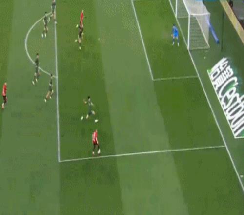 第18分钟,汪士钦停球失误,韦林顿右路断球突破禁区连过2人之后斜射破门,1比0!