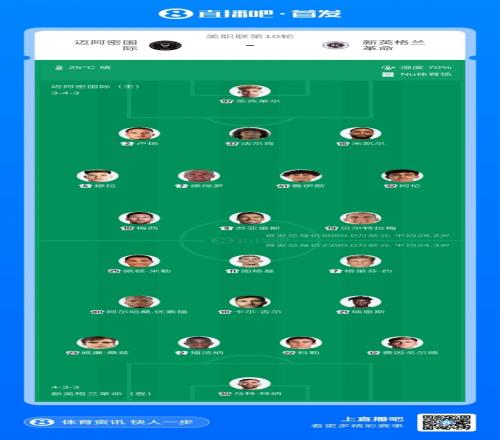 体育播报04月26日宣 美职联第10轮,迈阿密国际对阵新英格兰革命,赛前首发公布。