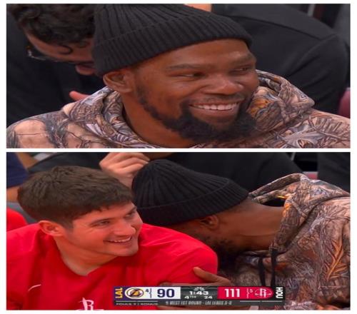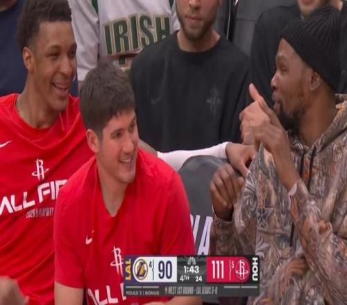 火箭队一战获5大喜讯拒绝横扫出局,冲击159负0翻盘铁律!杜兰特现身场边为队友加油咧嘴大笑击碎不和谣言。