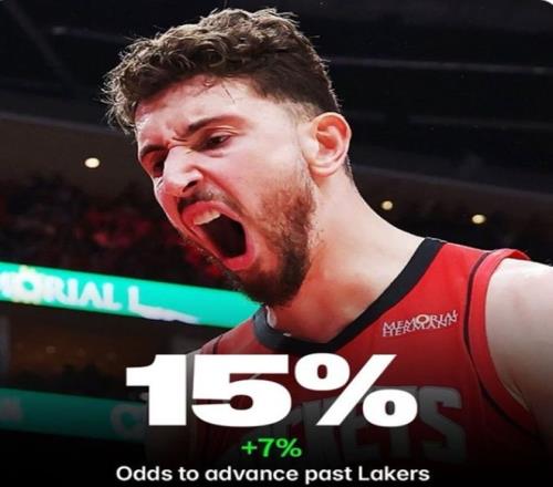 G4开始前火箭队翻盘概率仅为8%,G4拿下大胜后,火箭队翻盘概率提升至15%。