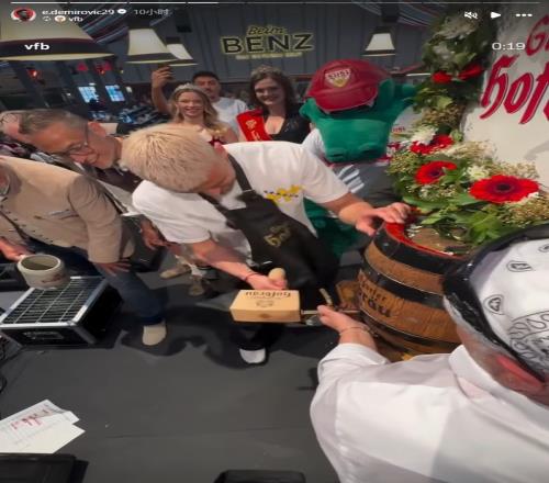 体育播报4月28日宣 《图片报》报道,斯图加特前锋德米洛维奇兑现承诺,请所有斯图加特球迷喝啤酒。