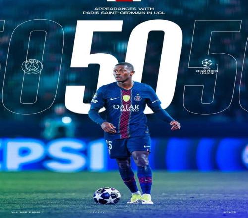 此役,努诺·门德斯迎来了个人PSG生涯第50场欧冠比赛