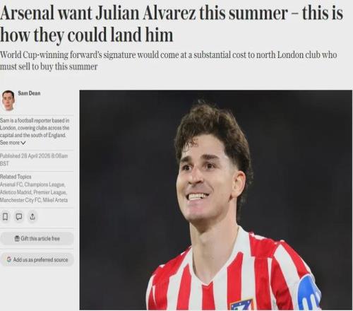 电讯报记者SD消息,阿森纳长期以来都对26岁的阿尔瓦雷斯很感兴趣,去年夏天他们就曾考虑过引进阿尔瓦雷斯的可能性,并且枪手现在依然想签下马竞球星。
