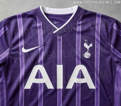 从曝光的球衣设计来看,热刺新赛季第二客场球衣将以深紫色系为主色调,整体采用竖向条纹设计,并在条纹边缘加入白色描边细节,视觉风格相比传统主客场球衣更为大胆。